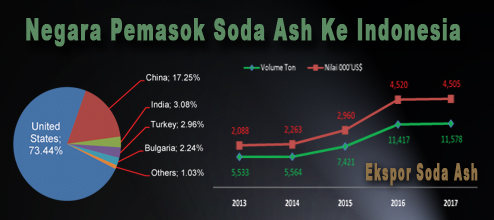 Ekspor Impor Soda Ash Indonesia, Sub sektor industri pengolahan selama lima tahun lalu meningkat rata-rata 8% per tahun dan khusus industri kimia dan pharmaceutical meningkat rata-rata 5% per tahun walaupun secara nilai investasi berada pada posisi ketiga terbesar setelah realisasi investasi di industri makanan pertama sedangkan industri metal, machinery dan elektronik pada posisi kedua.