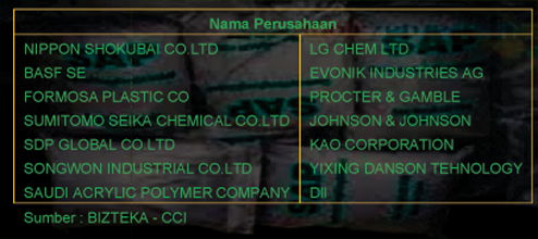 Impor Super Absorbent Polymer Besarnya permintaan bahan kimia Super Absorbent Polymer (SAP) atau sering disebut juga polyacrylate oleh industri dalam